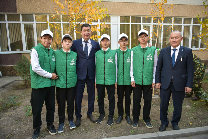 The plantings were organized within the framework of the Zhashyl Muras project and the decisions of the Eco-Council-2025, with special attention to the territories of schools.