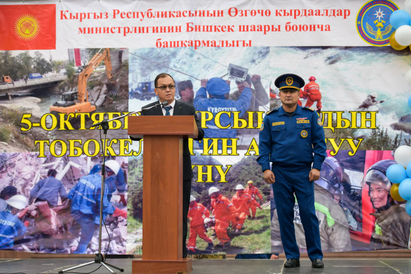 1-октябрда Т.Усубалиев атындагы аянтта Кырсыктардын тобокелдигин азайтуу күнүнө арналган салтанаттуу иш-чара өттү.