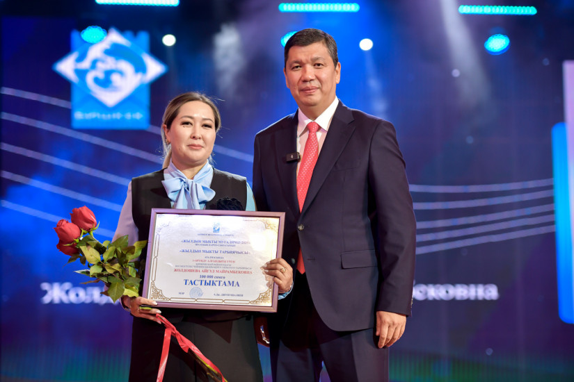 1-орунга 100 000 сомдук, 2-орунга 80 000 сомго, 3-орунга ээ болгон мугалимдерге 60 000 сомдук сертификаттар тапшырылды.
