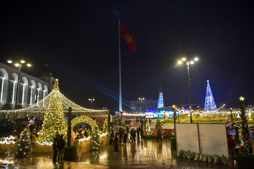 Бишкекте жаңы жылдык маанай. Ала-Тоо аянтында ачык асман алдында уюштурулган музыкалык кечелер уланууда — бул борбор калаанын тургундары жана коноктору үчүн чыныгы майрамдык белек.