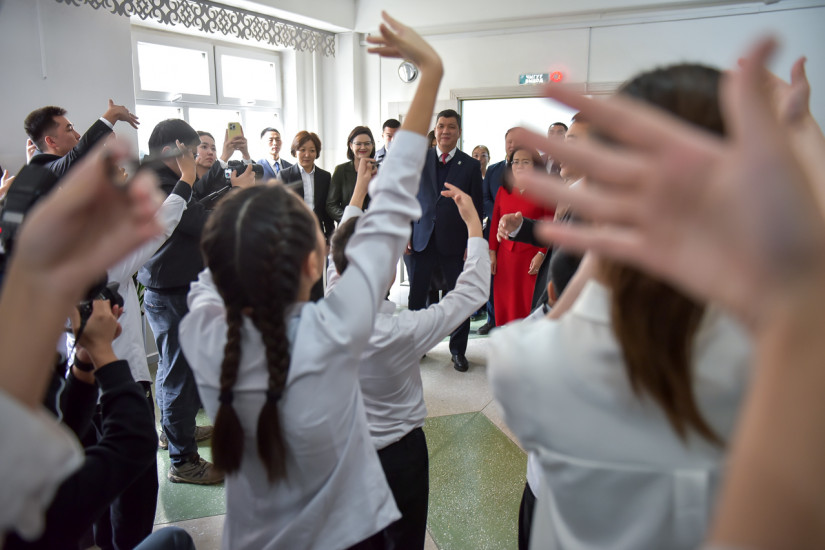 Конокторду мектеп окуучулары комуз, ооз комуз жана башка улуттук музыкалык аспаптарда аткарылган чыгармалар менен тосуп алышты. Ошондой эле окуучулар кытай элдик бийлерин жана кытай тилиндеги ырларды аткарып, Кытай Жаңы жылын майрамдоо салттарын тааныштырышты.