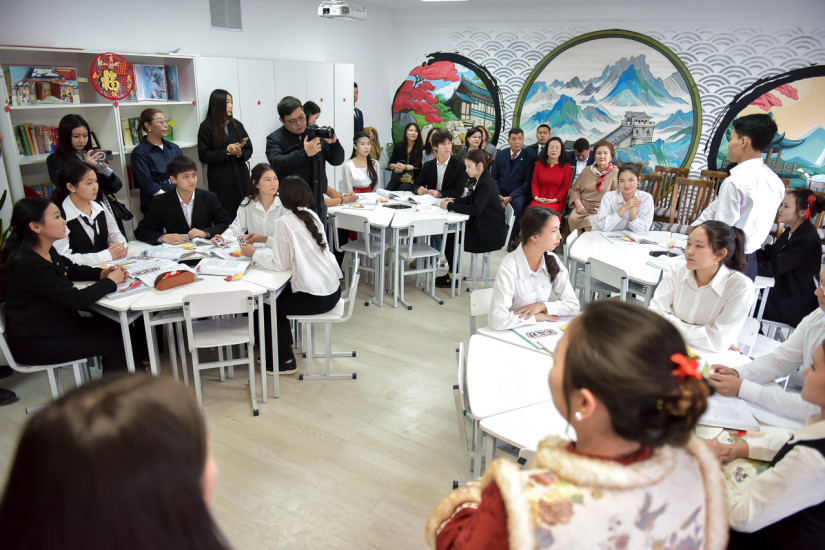 Куттуктоо сөзү менен Кытай Эл Республикасынын Элчиси Лю Цзянпин чыгып, окуучуларга окууда ийгиликтерди, жаңы жетишкендиктерди каалап, Кыргызстан менен Кытайдын ортосундагы маданий-агартуу байланыштар мындан ары да бекемделерине ишенимин билдирди.