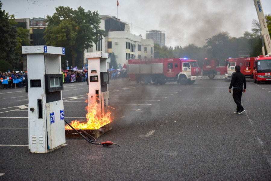 Программа жарандык коргонуу кызматтарынын парады менен башталды. Конокторго өрт жана кырсык учурундагы куткаруучулардын аракеттери, ошондой эле заманбап өрт-куткаруу каражаттары жана жабдуулары көрсөтүлдү.