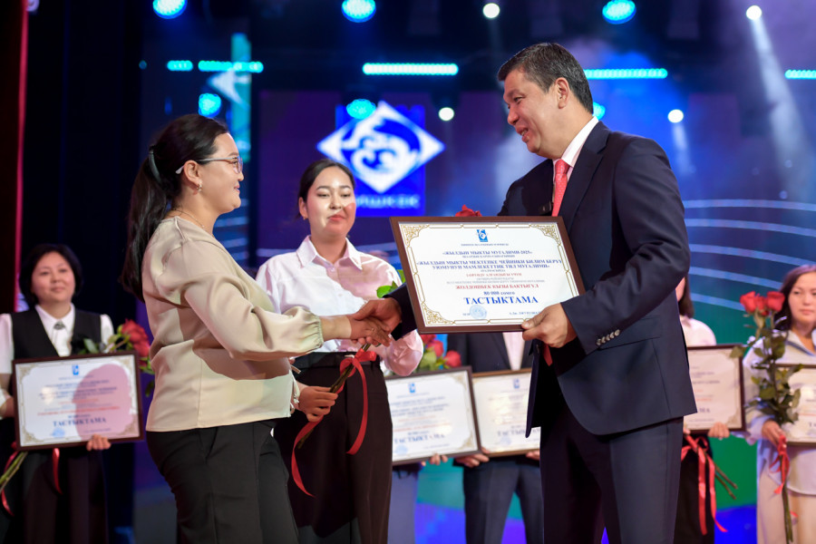 Шаар мэри «Жылдын мыкты мугалими – 2025» сынагынын, «Мыкты башталгыч класстын мугалими», «Мыкты кыргыз тили жана адабияты мугалими», «Мыкты математика мугалими», «Мыкты тарых мугалими», «Мыкты инсан жана коом таануу мугалими», «Мыкты англис тили мугалими», «Мыкты география мугалими», «Мыкты биология мугалими», «Мыкты химия мугалими», «Мыкты дене тарбия мугалими», «Мыкты сүрөт (ИЗО) мугалими», «Мектепке чейинки билим берүү уюмунун мыкты методисти», «Мектепке чейинки билим берүү уюмунун мыкты музыкалык жетекчиси», «Мектепке чейинки билим берүү уюмундагы мамлекеттик тилдин мыкты мугалими» номинацияларынын жеңүүчүлөрүн куттуктап, сыйлыктарды тапшырды.