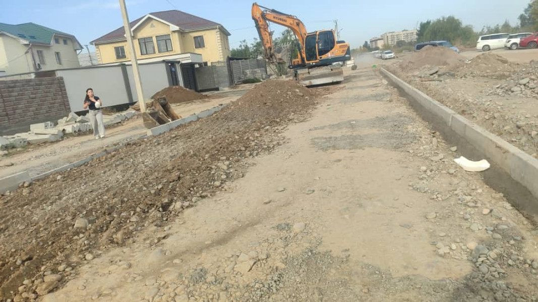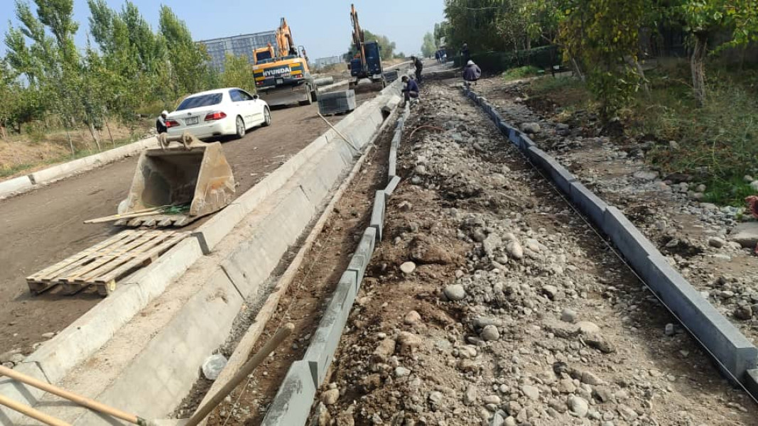 Ишкананын адистери тарабынан бордюрлар жана ирригациялык системалар орнотулуп, тротуарлардын негизи даярдалууда. Жакын арада жолдун өзүнүн негизин даярдоо башталат.