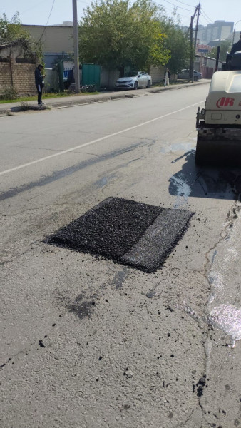 Учурда Д.Садырбаев көчөсүнүн Гагарин көчөсүнөн Масалиев көчөсүнө чейинки бөлүгүндөгү чуңкурларды оңдоо иштери жүрүп жатат.