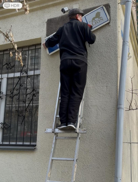 Бишкек шаарынын мэриясы шаар тургундарын мыйзам талаптарын сактоого чакырат жана «Кыргыз Республикасынын мамлекеттик тили жөнүндө» Кыргыз Республикасынын конституциялык Мыйзамынын 8-беренесине ылайык көчөлөрдүн аталыштары мамлекеттик тилде гана жазыларын эске салат.