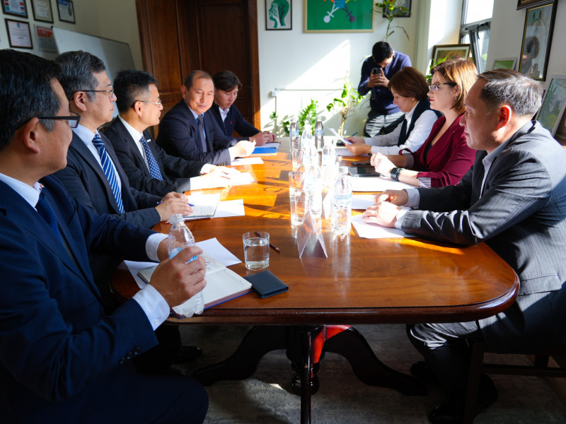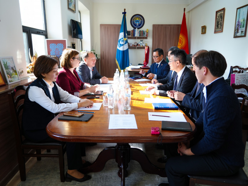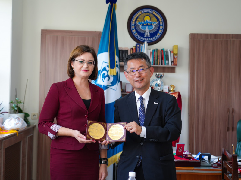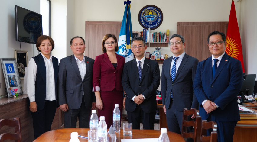 Борбор калаада Бишкек шаарынын мэринин орун басары Виктория Мозгачева менен "Кобе университетинин өнөр жай, бийлик жана илим боюнча шаардык кызматташуу платформасы" ассоциациясынын башкы катчысы Кен Фуджиока мырза жетектеген Япониянын билим берүү мекемелеринин делегациясынын жолугушуусу өттү.