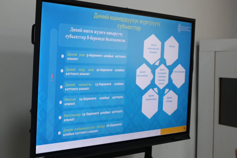 Ошондой эле, катышуучулар мамлекеттик органдар менен диний уюмдардын өз ара аракеттенүүсү, экстремизмдин алдын алуу жана борбор калаада коомдук ынтымакты чыңдоо маселелерин талкуулашты.