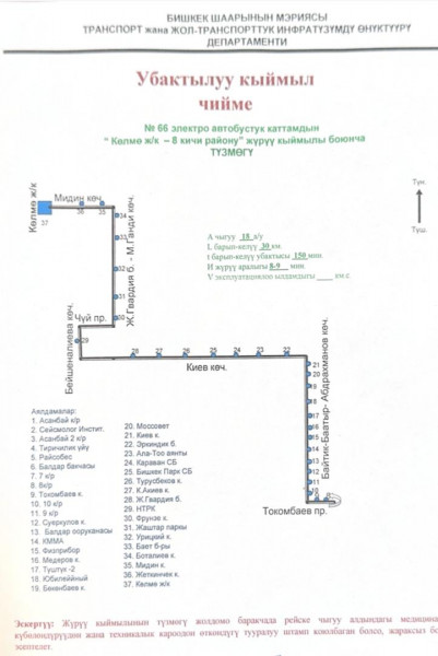 2025-жылдын 15-ноябрынан тартып борбор калаада №66 жаңы электробус каттамы ишке кирет.