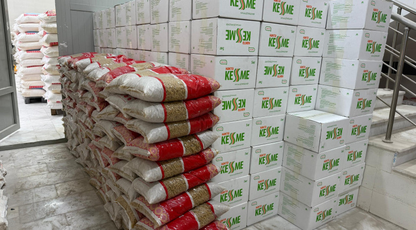 Ар бир үй-бүлөгө төмөнкүлөр кирген азык-түлүк баштыктары берилди: