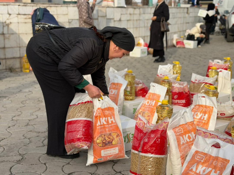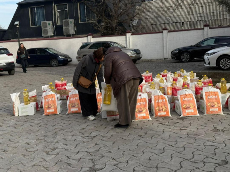 Жаңы жылды утурлап, Бишкек шаарынын мэриясы "Акун" ЖАК менен биргеликте социалдык жактан аялуу тургундарга гуманитардык жардам көрсөттү.