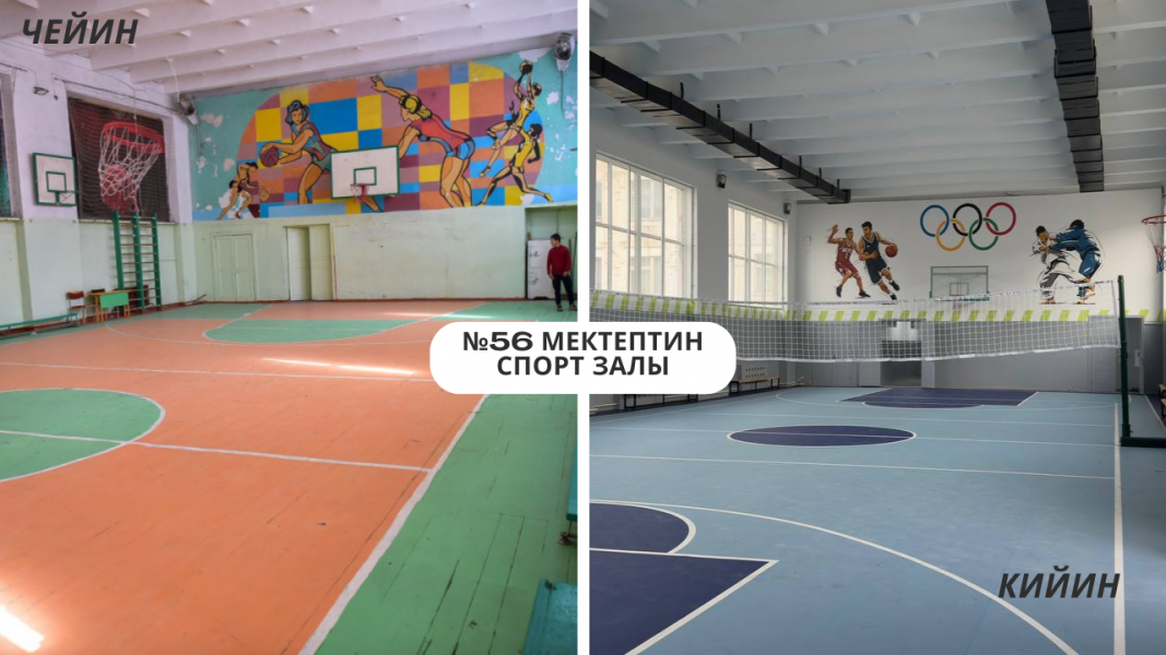 Бишкек шаарынын мэри Айбек Джунушалиевдин бир нече жолку жеринде текшерүү жүргүзгөнү, катуу тартиби менен кадрдык чечимдеринин, анын ичинде Октябрь районунун акиминин орун басарын кызматтан бошотуу чечиминин негизинде, объекттеги иштер жанданып, №56 орто мектептин спорт залынын капиталдык курулушу жыйынтыкталды.