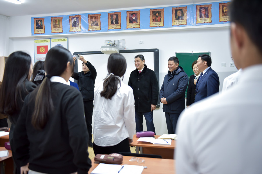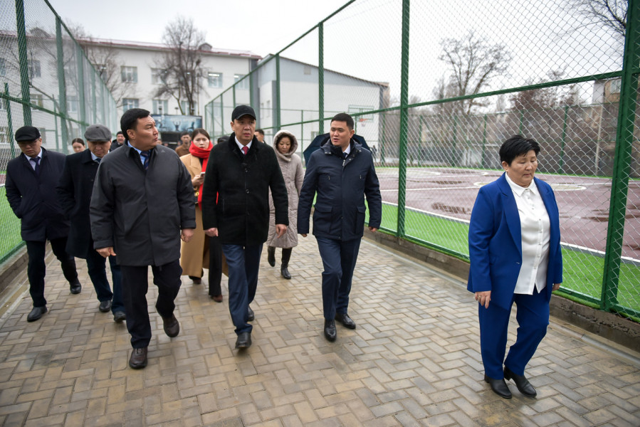 Бишкек шаарынын мэри Айбек Джунушалиев Курулуш, архитектура жана турак жай-коммуналдык чарба министри Нурдан Орунтаев менен бирге реконструкциядан өткөн №39 орто жалпы билим берүү мектебине барышты.