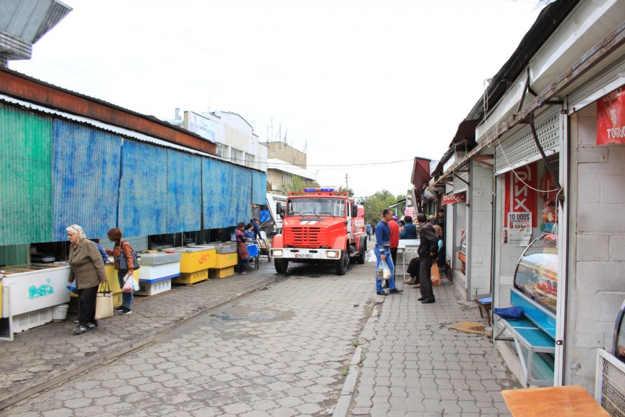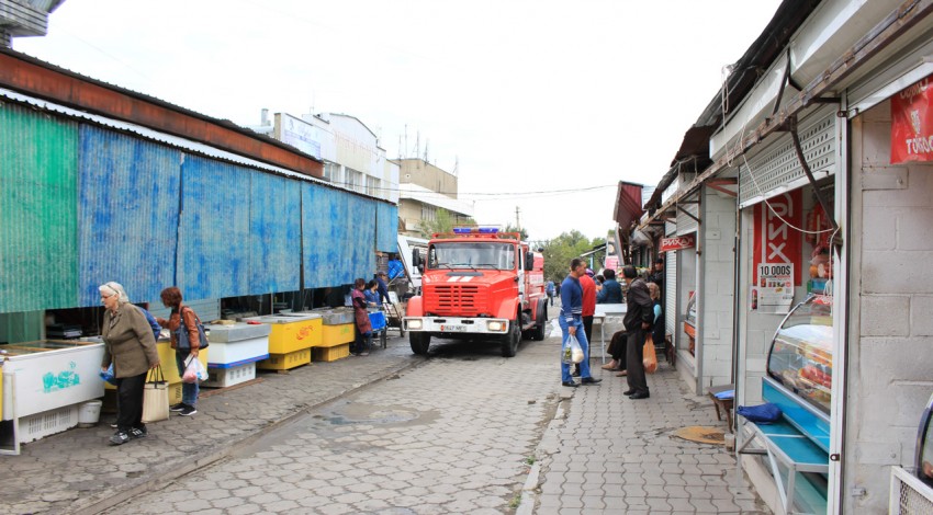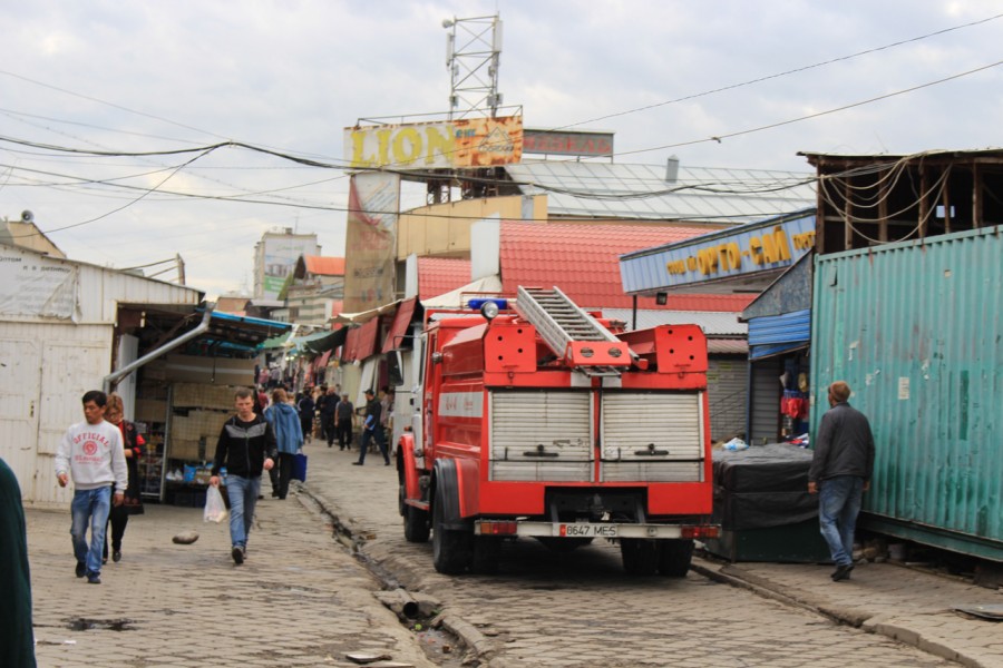 Пожарная машина специально проехала по всем проездам и проходам общего пользования. В дальнейшем в проходах, проездах и на тротуарах вдоль улицы Суеркулова стихийная торговля будет пресекаться.
