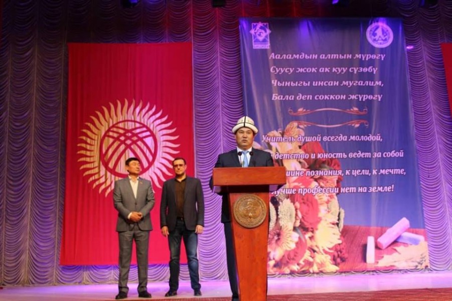 В своем поздравлении глава района отметил, что на учителя возложена важнейшая миссия стать первым после родителей проводником будущего гражданина по лабиринтам жизни. Выразил слова благодарности учителям, за терпение и неустанный труд. Также отметил, что школы Первомайского района являются флагманами в системе образования не только города но и страны, к примеру среди 27 обладателей «золотых» сертификатов на общереспубликанском тестировании по городу Бишкек, 23 выпускники школ Первомайского района.