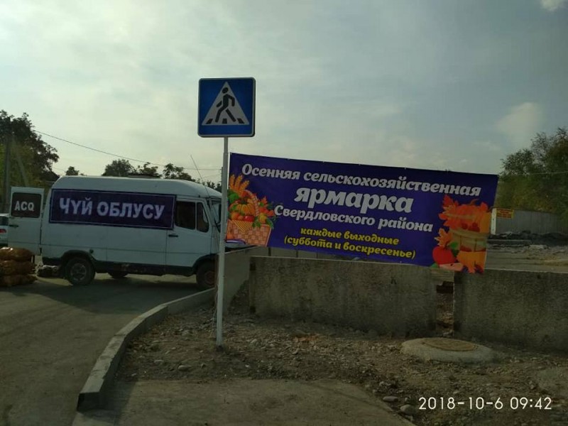 На территории Свердловского района на улице Айтматова – Токтогула осенняя ярмарка прошла впервые. И несмотря на то, что площадка под ярмарку стала новой для социальной ярмарки, мероприятие прошло очень успешно, в которой приняло участие 52 предпринимателя, ее посетили более 2 тысяч покупателей со Свердловского района и Чуйской области. Традиционно самыми популярными стали «Ценопадные» продукты – позиции без торговой наценки, значительно отличающиеся от рыночных цен. Лидером продаж стало свежее мясо, молоко, мёд, хлебобулочные, колбасные изделия овощи и фрукты. Также, по просьбе жителей и в целях обеспечения горожан качественными продуктами питания по доступным ценам по улице Ауэзова в микрорайоне «Аламедин-1» и по улице Орозбекова в районе «Старого толчка» каждые выходные дни проводятся сельскохозяйственные ярмарки, в которой реализуются качественные продукты питания по доступным ценам.