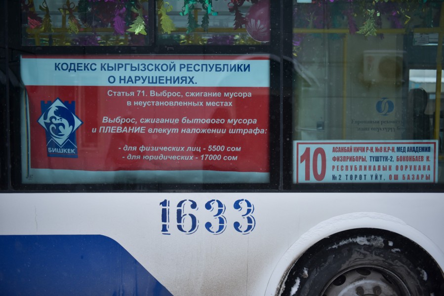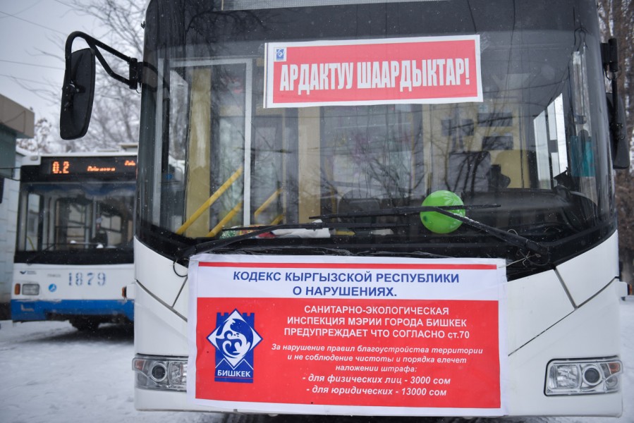 В частности, плакаты содержали информацию о том, что с 1 января 2019 года вступает в силу Кодекс о нарушениях. За нарушения правил благоустройства города штрафы увеличиваются. Также добавлен пункт «Плевание», за который штраф составляет 5 тыс. 500 сомов.