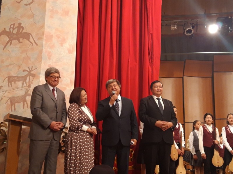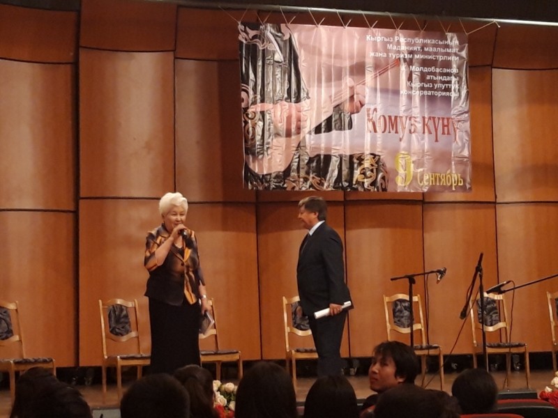 В Кыргызской национальной консерватории имени К. Молдобасанова состоялся концерт с участием знаменитых комузистов, деятелей культуры и порядка 500 учеников-комузистов.