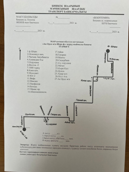 Продлена схема движения микроавтобусного маршрута №169 до улицы Жаны Доор, остальная часть схемы осталась без изменений.