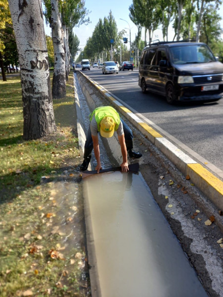 Также велась ручная очистка открытых коллекторно-дренажных сетей по улице Карагачевой от Фере до переулка Суусамырского.