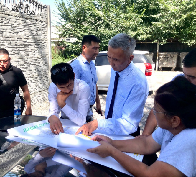 В состав группы вошли представители Свердловского акимиата, ГУ «Бишкекглавархитектура», БФ ГУ «Кадастр», муниципальной инспекции по контролю за благоустройством и землепользованием, ДИЖСиГ, ОГУКС, общественников МТУ и председателей квартальных комитетов.