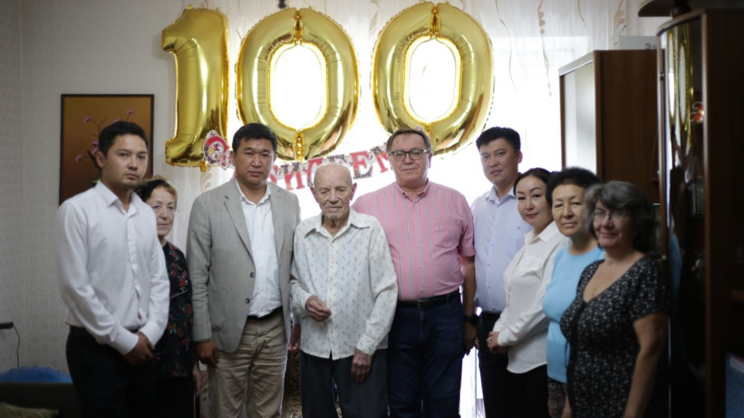Поздравил ветерана первый заместитель главы Первомайского района Жээнбек Осмоналиев и в честь 100-летнего юбилея вручил поздравительное письмо от имени акима района и сертификат на материальную помощь, также от администрации торгового центра «VEFA Center» передали денежный презент.