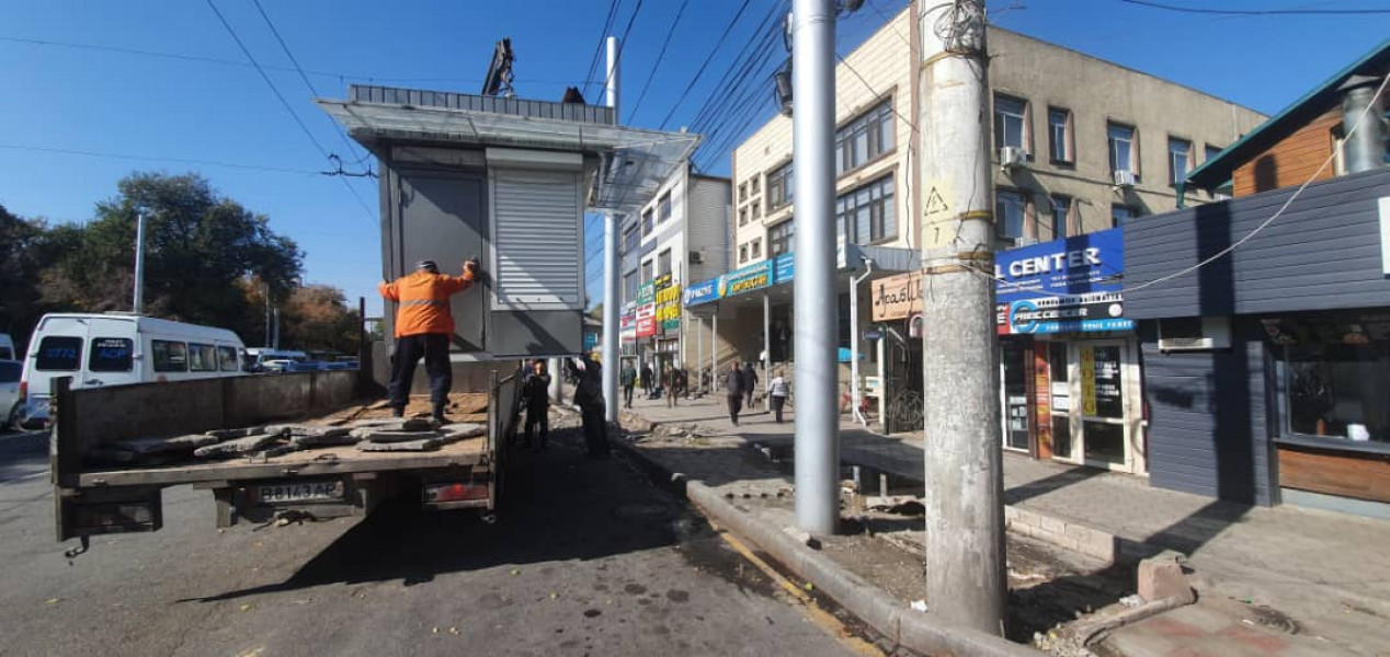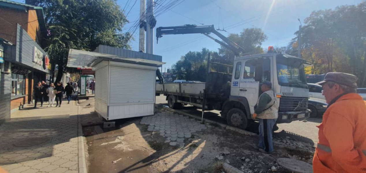 Так, инспекцией демонтирован киоск на пересечении улиц Жибек-Жолу и Т.Молдо. А вот киоск на улице Сыдыкова ликвидирован со стороны владельца в добровольном порядке.