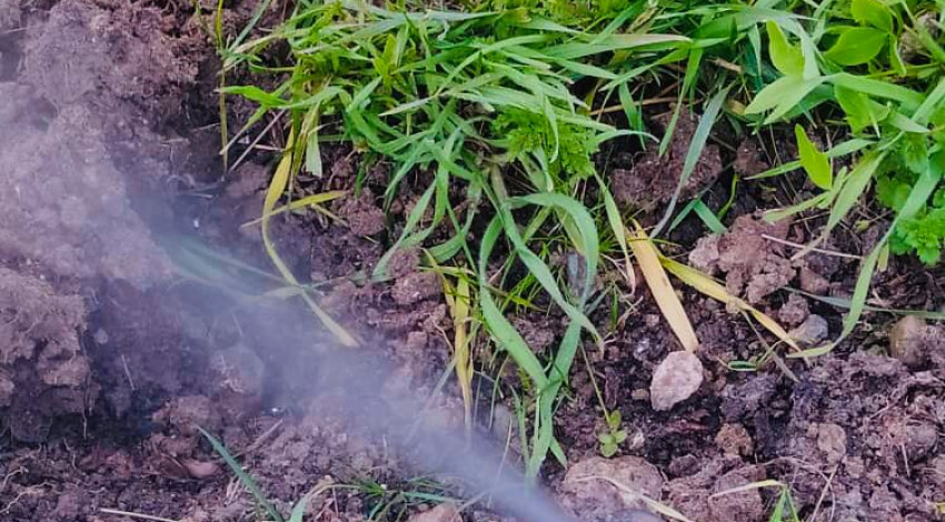 Зеленхозовцы с помощью специализированной техники выдувают оставшуюся воду из поливочных труб, которые находятся под землей чтобы вода их не взорвала. Продувка системы полива осуществляется с помощью воздушного компрессора , который перевозит трактор МТЗ 82.