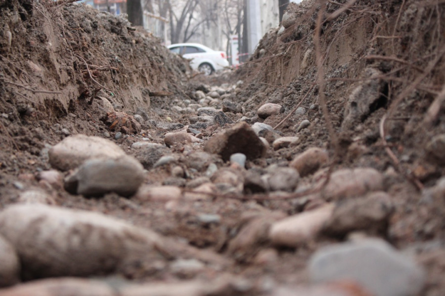 На территории Октябрьского района идёт реконструкция восточной стороны улицы Байтик Баатыра от Токомбаева до Льва Толстого.