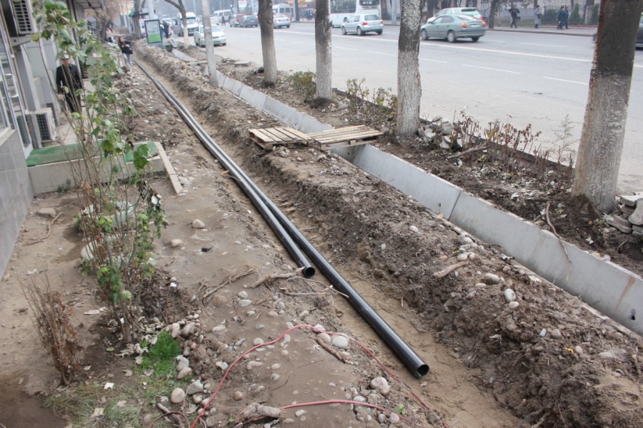 Протяженность тротуара составляет 3800 метров, также идет работа по замене ирригационных лотков.
