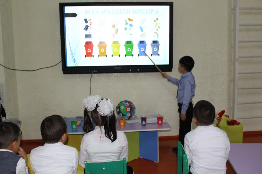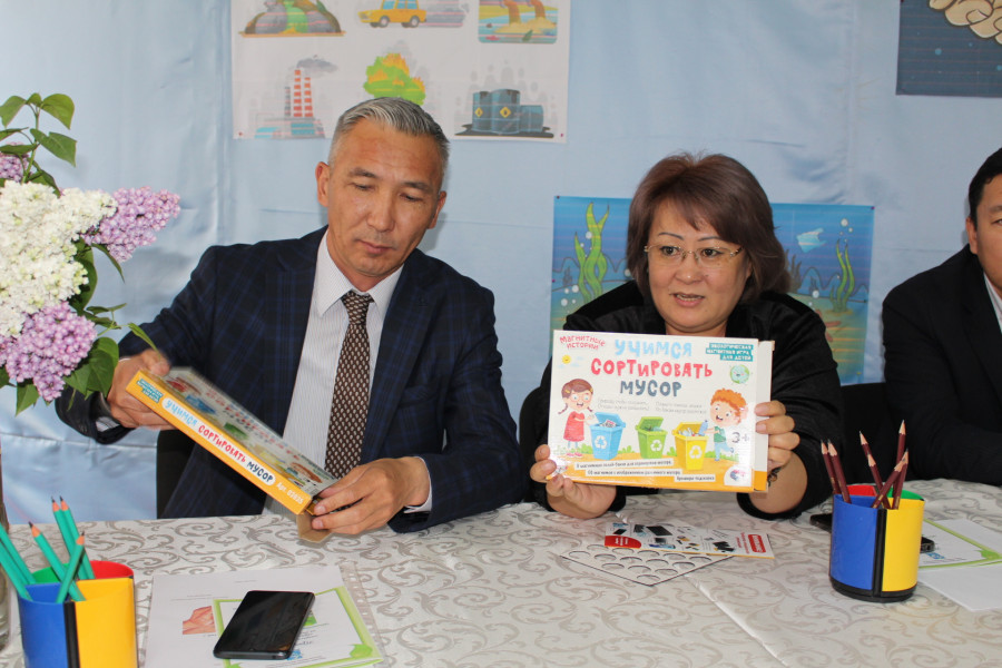 На уроке глава Свердловского района Максатбек Саргазаков отметил, что эти занятия позволяют дошколятам учиться, с юного возраста различать бытовые и твердые отходы.