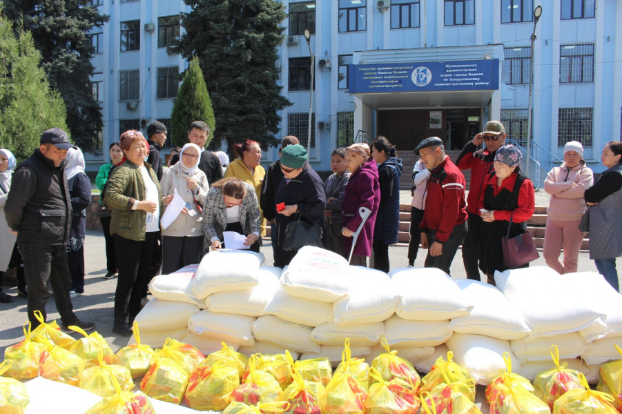 Сегодня, 20 апреля в рамках приближающегося праздника Орозо Айт по инициативе депутата Жогорку Кенеша Бакыта Тентишева 50 малоимущим семьям Свердловского района вручены продуктовые наборы.