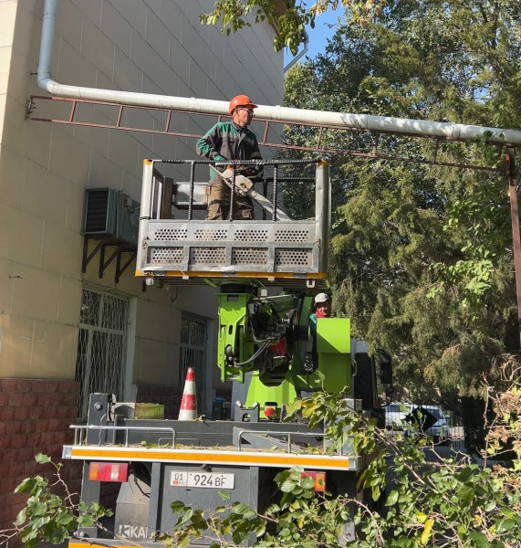 Муниципальное предприятие «Бишкекзеленстрой» проводит работы по санитарной обрезке и удалению сухостойных деревьев на территории образовательных учреждений столицы.