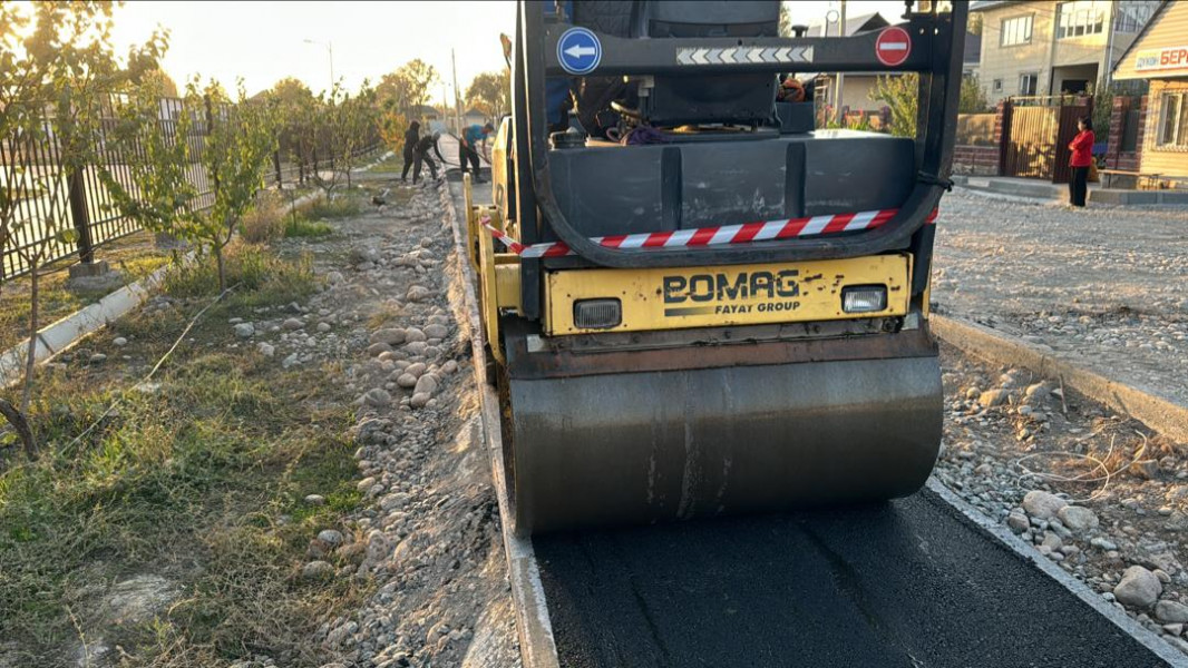 Отметим, что при благоприятных погодных условиях укладка асфальта на проезжей части начнётся в течение 10 рабочих дней. Работы проводятся подрядной организацией ОсОО «Жанар Строй Групп».