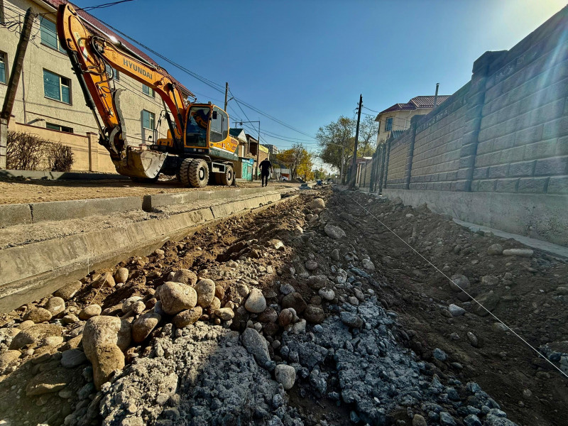 На сегодняшний день завершены работы по установке дорожных бордюров, продолжается установка тротуарных бордюров с западной стороны, а также монтаж ирригационной системы. Параллельно ведётся подготовка основания под тротуар.