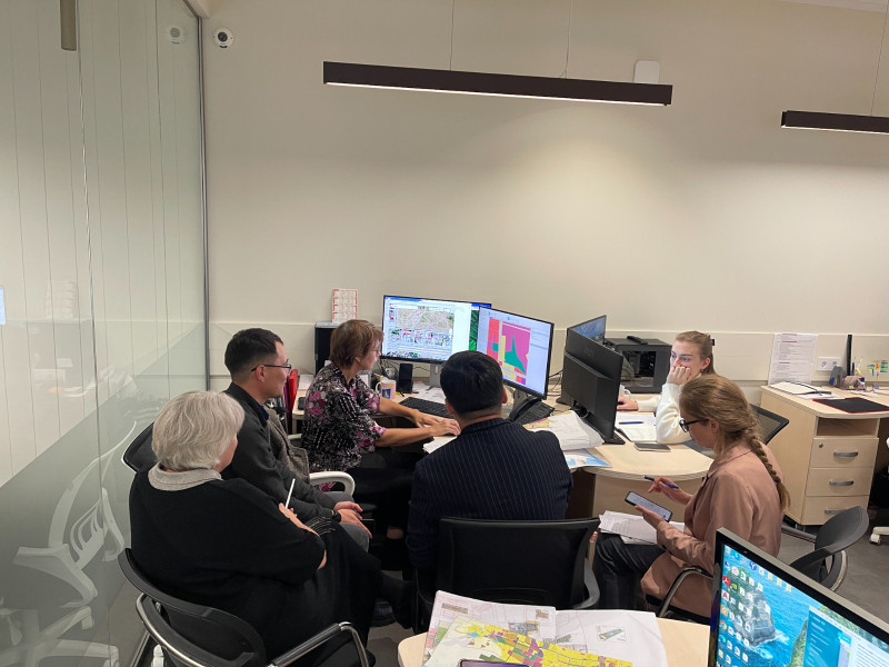 Представители мэрии города Бишкек и Бишкекского главного управления по градостроительству и архитектуре посетили Научно-исследовательский институт перспективного градостроительства и встретились с разработчиками генерального плана Бишкека.