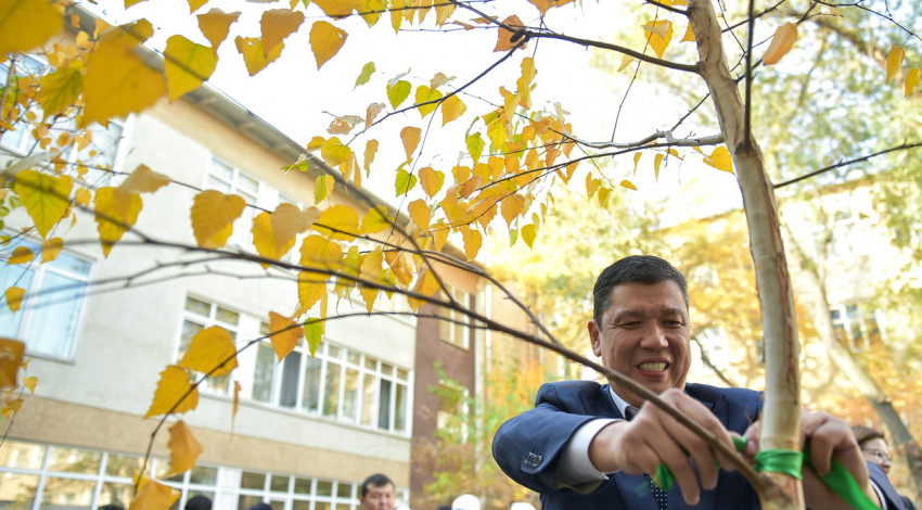 Мэр Айбек Джунушалиев вместе с министром природных ресурсов, экологии и технического надзора КР Медером Машиевым посадили саженцы на территории школы №12 в Свердловском районе.