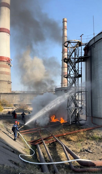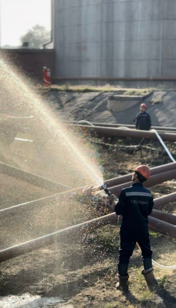 По сценарию второго дня учений, в результате землетрясения магнитудой 6 баллов произошло возгорание на мазутном хозяйстве ТЭЦ.