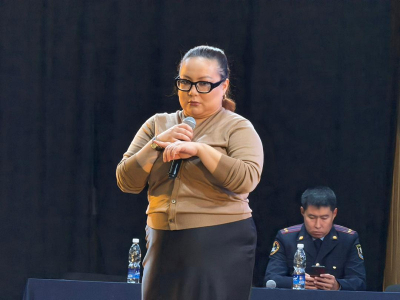 Перед ребятами выступили представители Службы по борьбе с незаконным оборотом наркотиков МВД Кыргызской Республики — начальник отдела профилактики и взаимодействия с общественностью подполковник милиции Каныбек Усенов, а также врач-психиатр, нарколог Тинатин Сагынбаева.