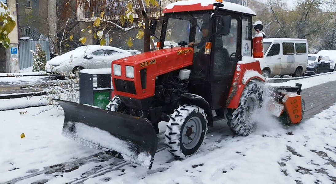 Коммунальные службы столицы продолжают работы по очистке улиц и тротуаров от снега, которые проводятся в усиленном режиме. По состоянию на 5 октября 2025 года для обработки дорог противогололедной смесью задействовано 13 КДМ машин, 21 трактор «Беларус» и один фронтальный погрузчик.