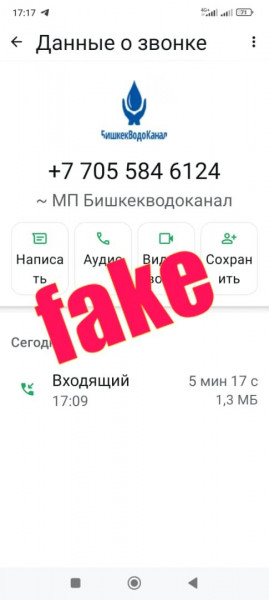 Муниципальное предприятие «Бишкекводоканал» информирует горожан о зафиксированных случаях телефонного мошенничества. Неизвестные лица представляются сотрудниками предприятия и пытаются получить личные данные клиентов.