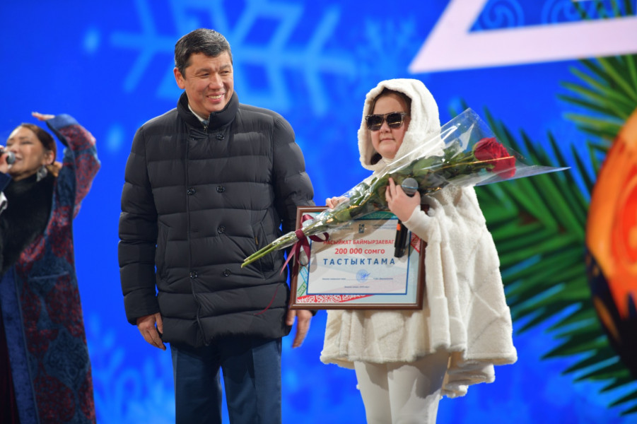 В рамках мероприятия мэр города Айбек Джунушалиев также вручил денежный сертификат из резервного фонда мэрии города Бишкек Насыйкат Бекмырзаевой - на проведение необходимой операции.