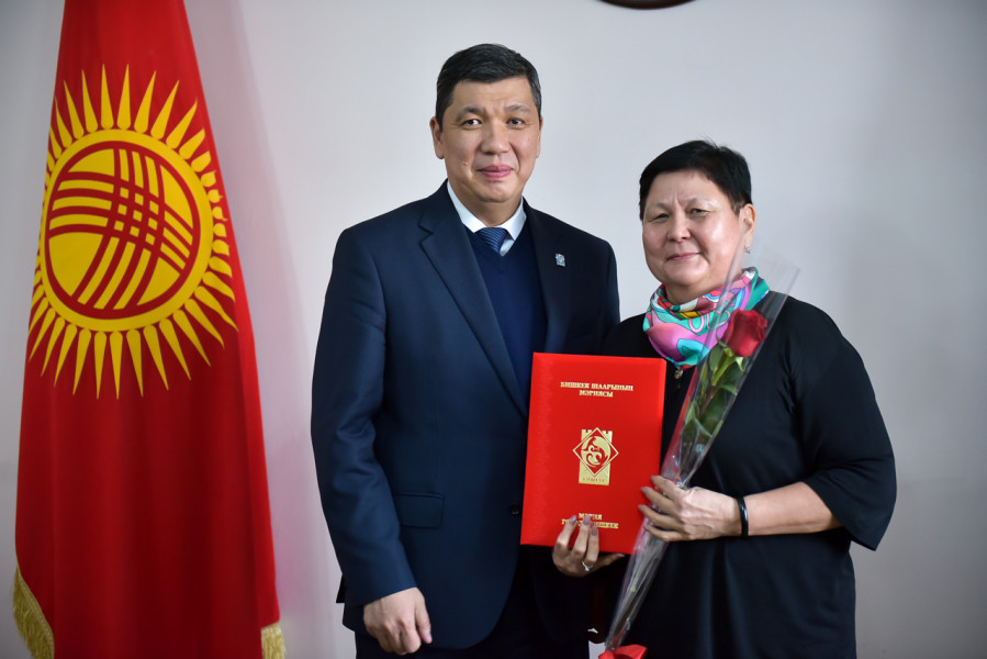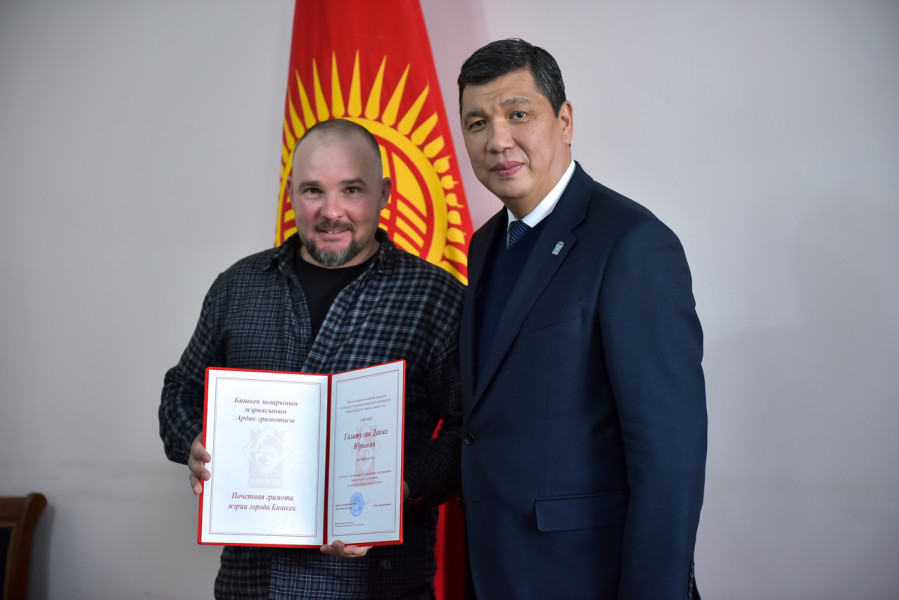 Мэр Айбек Джунушалиев наградил сотрудников ОсОО «Северное сияние грейт» за вклад в организацию и проведение мероприятий, направленных на развитие культурной жизни города Бишкек.