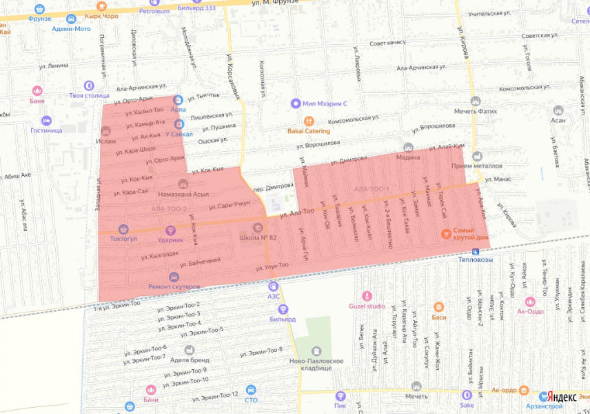 Район отключения: жилые массивы Ала-Тоо 1 и Ала-Тоо 2.