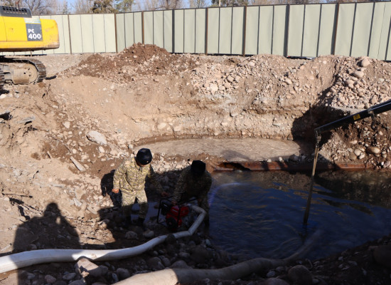 В Бишкеке продолжаются работы по устранению аварии на водоводе 5-го микрорайона