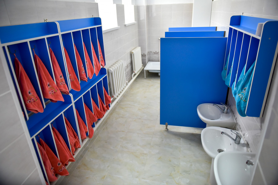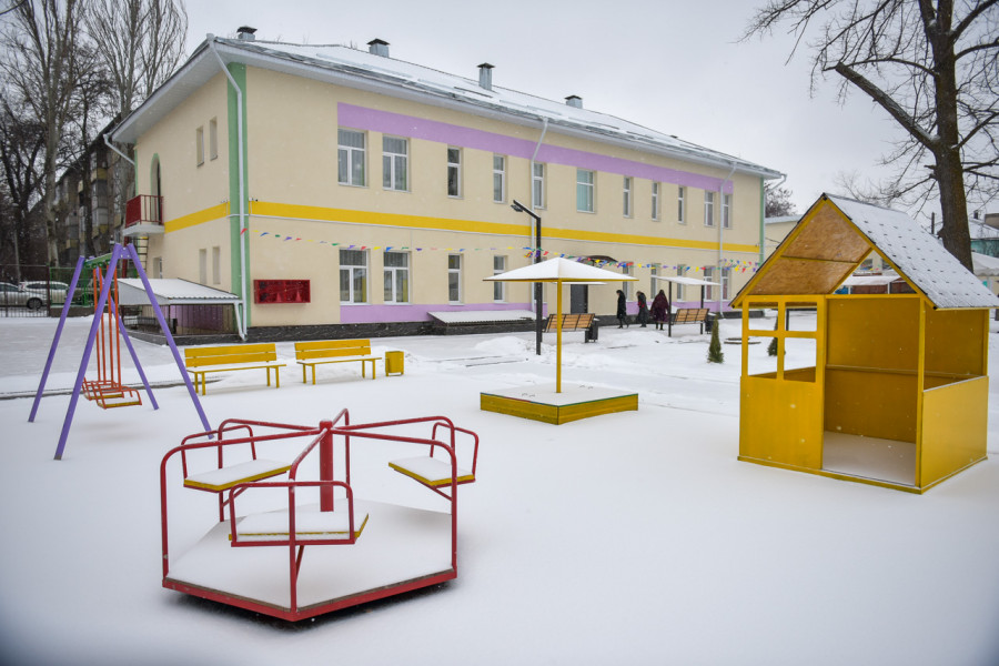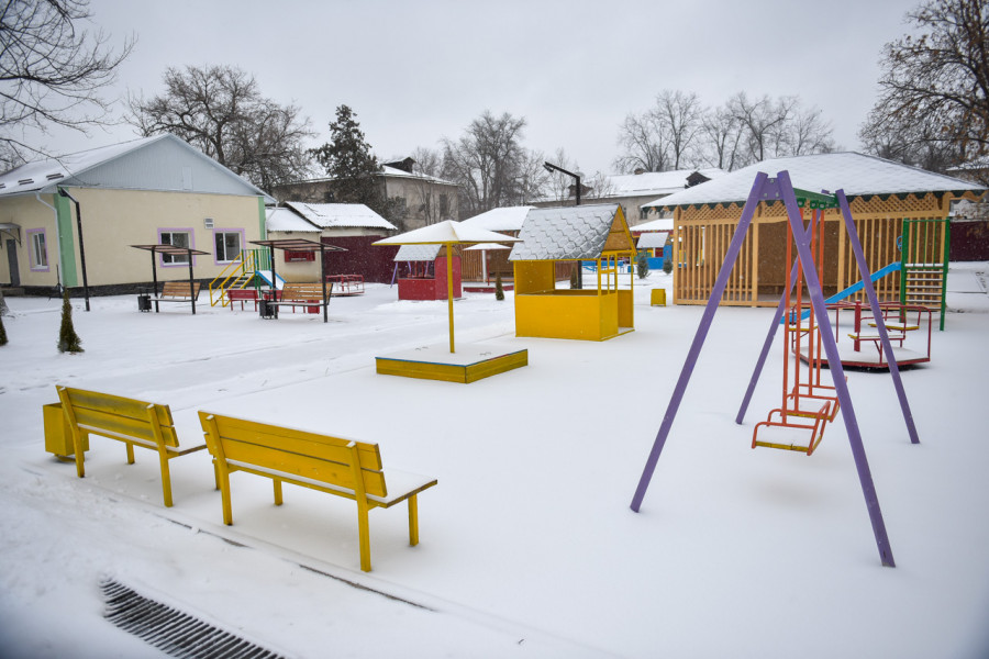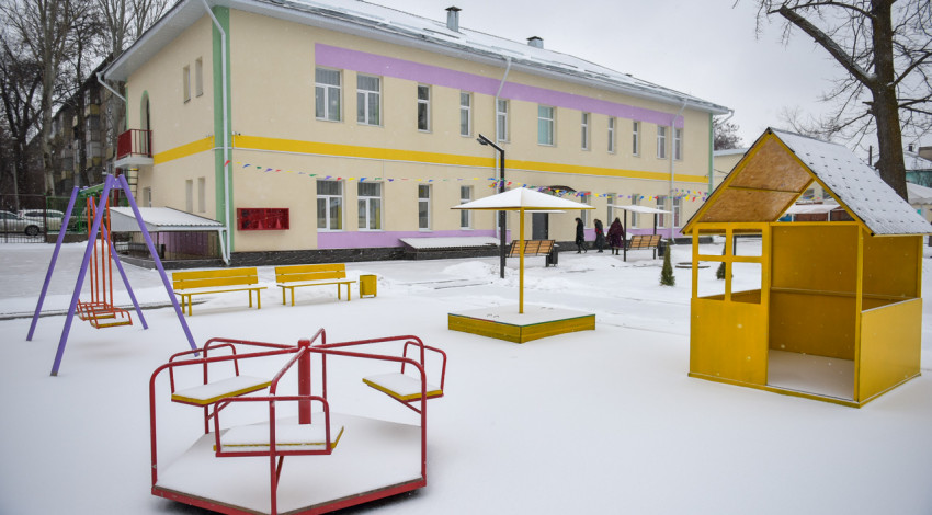 Also, four children's playgrounds with a rubber coating have been landscaped, paving stones have been laid on the territory of the kindergarten. A metal fence has been installed around the perimeter of the institution, a ventilation device has been installed in the basement, and green spaces have been planted.