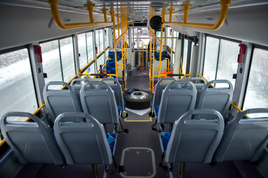 Note that the length of the low-floor bus is 10.5 meters, it is equipped with a gas engine. The bus is designed to carry 75 people, of which 26 are seated and one is for citizens with disabilities.