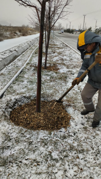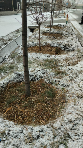 In the capital, young seedlings began to prepare for the upcoming frosts.So, trees with open holes were insulated along Aaly Tokombayev Street.This procedure is necessary for young trees to make it easier for them to endure frosts.