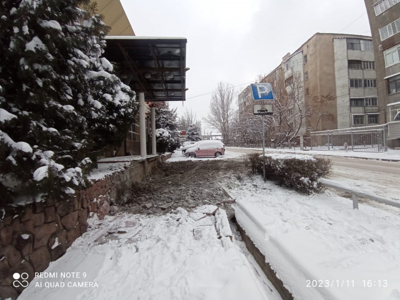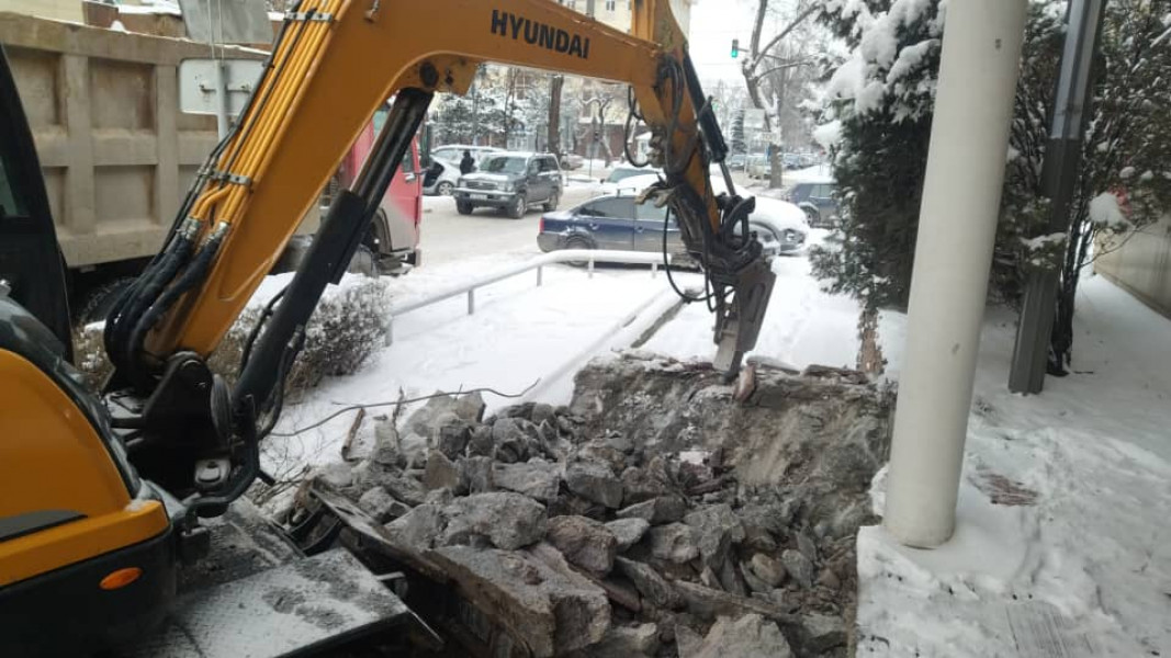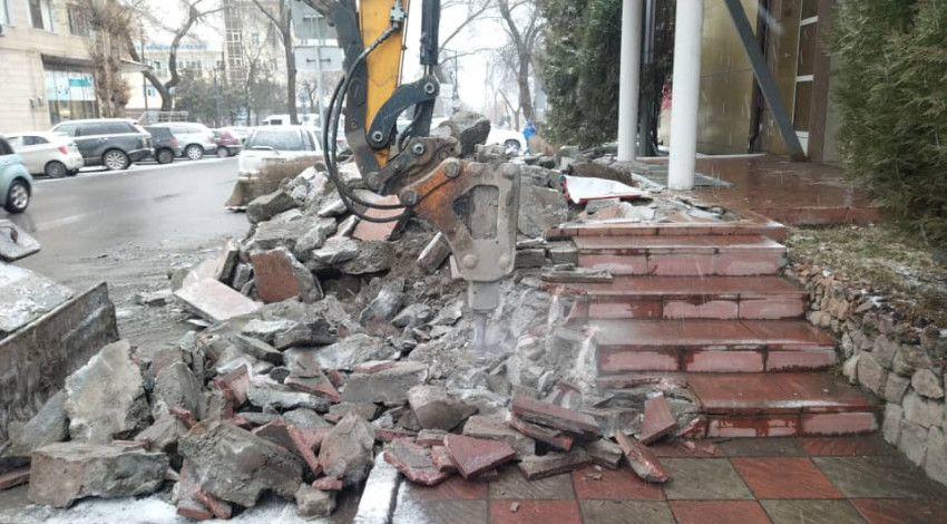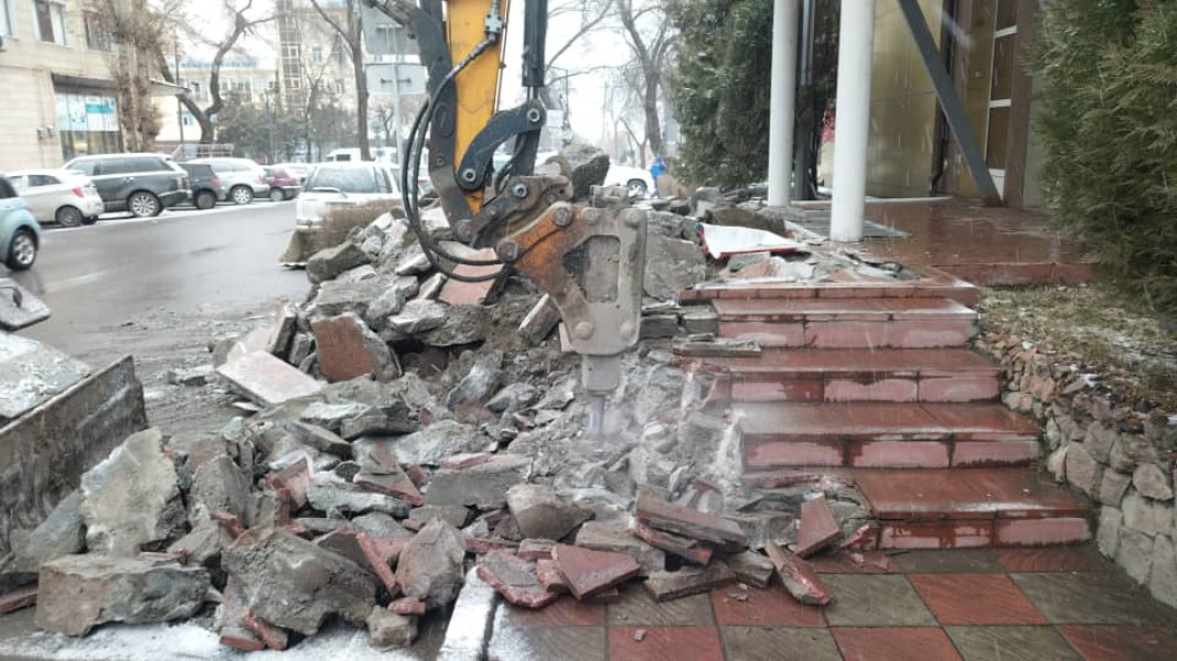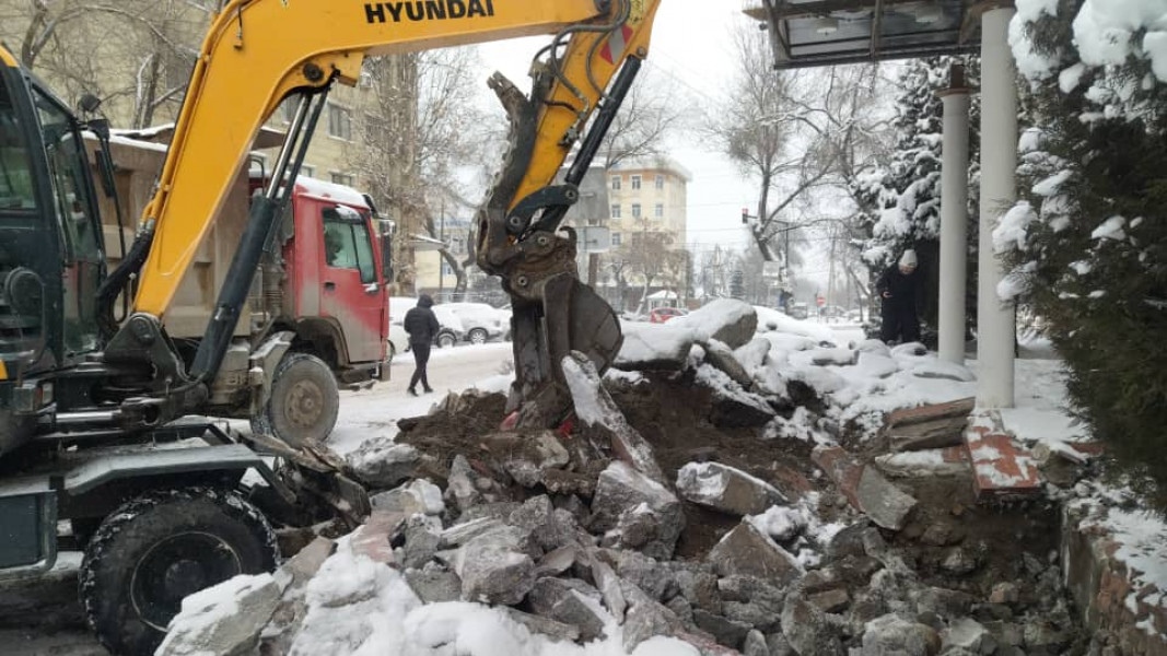 In Bishkek, an illegal building was demolished, the boundaries of which went beyond the sidewalk line at the address: Elebaeva St. No. 60.